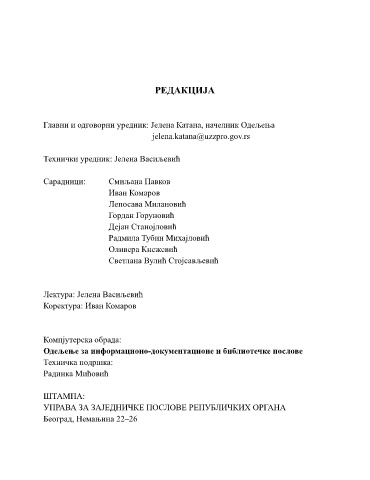Главни и одговорни уредник: Јелена Катана, начелник Одељења