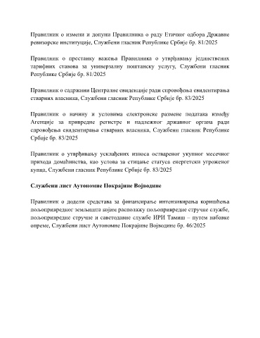 ревизорске институције, Службени гласник Републике Србије бр. 81/2025