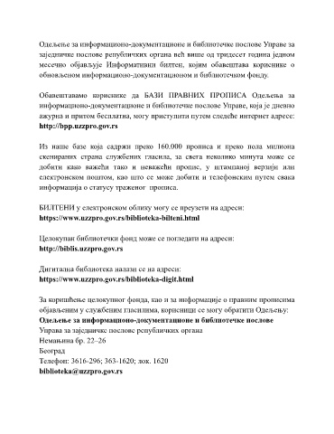 информационо-документационе и библиотечке послове Управе, која је дневно
