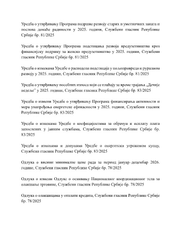 развоју у 2025. години, Службени гласник Републике Србије бр. 81/2025
