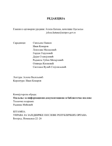 Главни и одговорни уредник: Јелена Катана, начелник Одељења