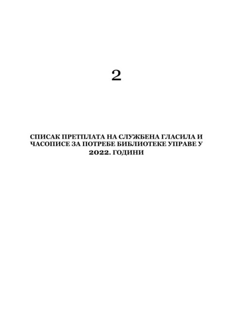 2 СПИСАК ПРЕТПЛАТА НА СЛУЖБЕНА ГЛАСИЛА И ЧАСОПИСЕ ЗА ПОТРЕБЕ БИБЛИОТЕКE УПРАВЕ У 2022. ГОДИНИ