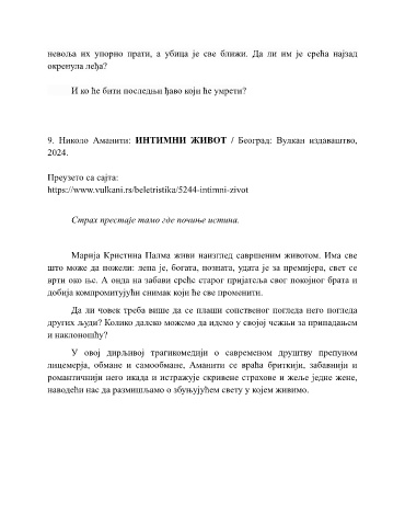 9. Николо Аманити: ИНТИМНИ ЖИВОТ / Београд: Вулкан издаваштво,